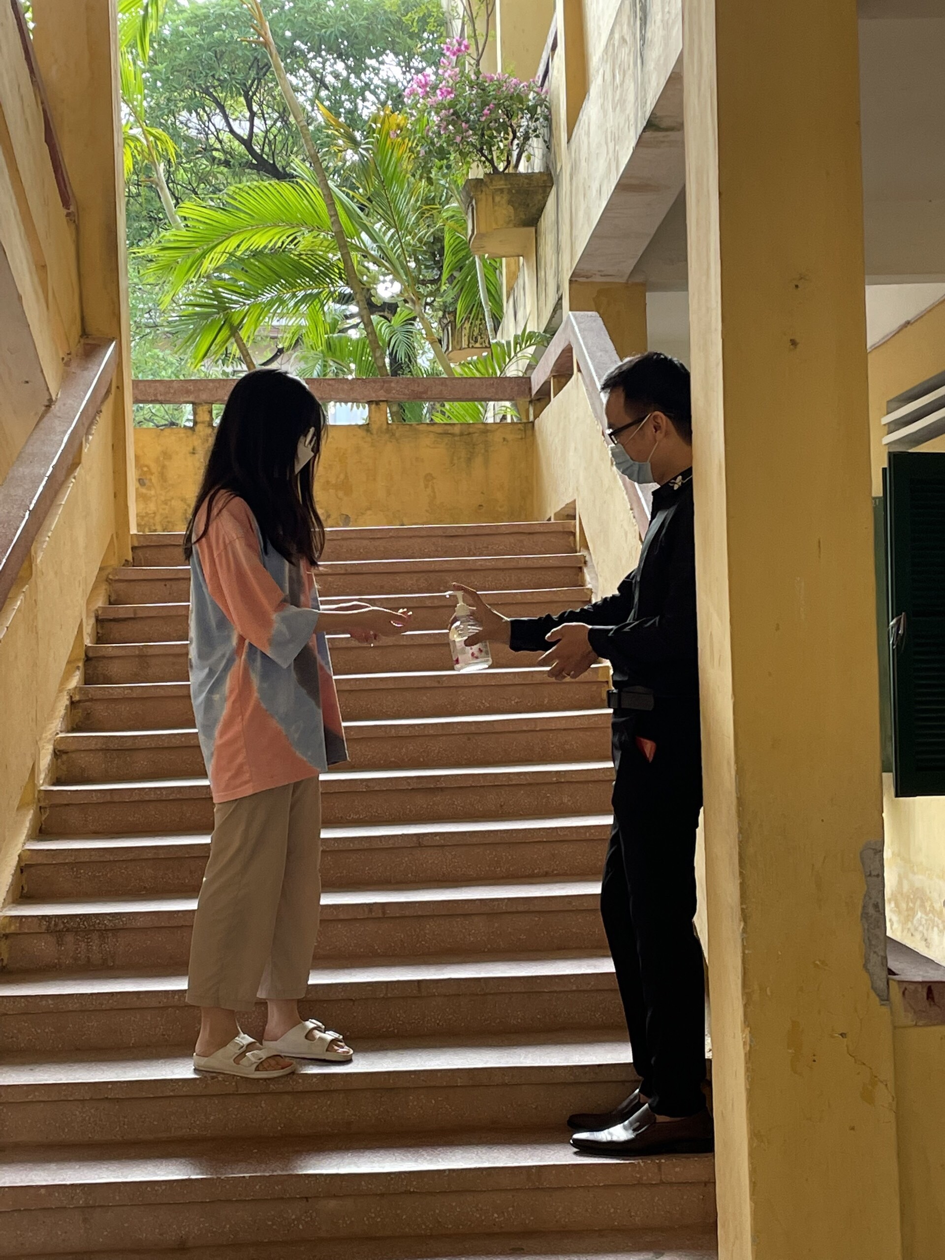 Gặp lại thầy cô bạn bè trong giai đoạn này thật đặc biệt, không còn thấy những cái bắt tay, những nhóm bạn tập trung rôm rả câu chuyện từng gốc cây như những năm học trước, hầu hết các em đều có ý thức tự bảo vệ bản thân, đeo khẩu trang 100% trong suốt quá trình có mặt tại trường.