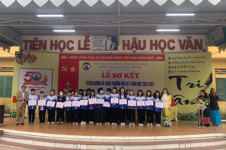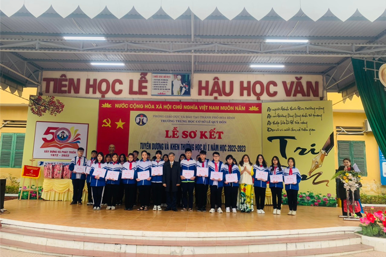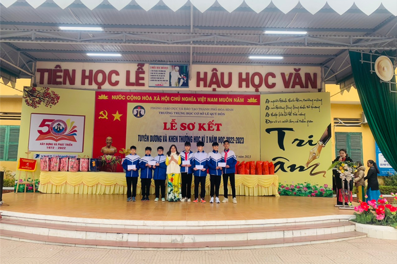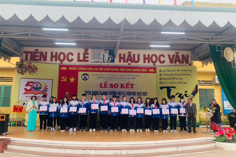Khen và tặng thưởng cho 277 học sinh xuất sắc, học sinh giỏi, học sinh tiên tiến học kỳ I, năm học 2022 - 2023. 09 lớp đạt lớp Xuất sắc, 06 lớp đạt lớp tiên tiến. Khen và thưởng học sinh đạt giải môn Cầu lông – Bóng bàn học sinh TP hoà Bình năm 2022 gồm 01 giải nhì 04 giải ba. Khen học sinh đạt huy chương đồng giải bóng đá nam học sinh THCS năm học 2022 – 2023.