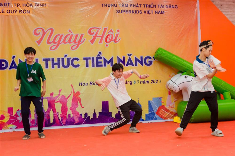 Trong khuôn viên trang trại, các em đã cùng nhau tham gia chuỗi hoạt động Team Building trong khu nhà hội trường rộng lớn trong các phần thi Ngày hội “Đánh thức tiềm năng” dưới sự dẫn dắt tài tình, sôi động đầy nhiệt huyết của các MC của Trung tâm phát triển tài năng Superkids, các xe nhanh chóng hình thành đội nhóm hào hứng thể hiện sự nhanh nhẹn, khéo léo, trí thông minh, sáng tạo. Lời dẫn dắt hóm hỉnh của các MC đã thu hút được sự hào hứng của các học trò… và những phần quà hấp dẫn từ Ban tổ chức cũng góp phần tạo động lực không nhỏ cho các team. Không khí trong hội trường nóng dần lên với các trò chơi đồng đội, sân chơi bùng nổ với phần trình diễn của các bậc CMHS, các thầy cô giáo và đặc biệt là cô Hiệu trưởng vô cùng đa zi năng trong tiếng reo hò cổ vũ, tiếng vỗ tay không ngớt của các em học sinh đang rất phấn khích.