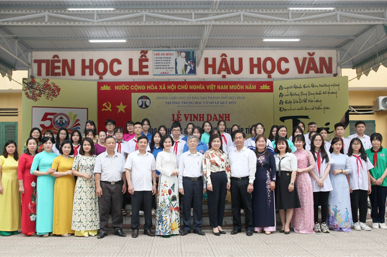 Niềm hân hoan không chỉ trong ánh mắt nụ cười của cô và trò được vinh danh, nhận thưởng mà niềm vui đó còn bừng sáng trên nét mặt hân hoan, xúc động của toàn trường. Cổ nhân có câu: Niềm vui chia sẻ được nhân đôi! Hôm nay, năm học này, Niềm vui lan tỏa tới các bậc PHHS của các khối lớp được nhân lên gấp bội. Những lời phát biểu xúc động của cô giáo Đặng Thị Thu Hiền, em Nguyễn Sơn Bình – Học sinh lớp 9a4 đã khiến cho buổi Lễ thêm nhiều ý nghĩa. Câu hát trong bài hát truyền thống của nhà trường khép lại chương trình vinh danh sẽ ngân nga mãi trong tâm khảm mỗi chúng ta: “Lê Quý Đôn những sắc màu yêu thương. Đường đến vinh quang không còn xa vời vì có trí thức và niềm tin… Luôn khắc ghi trong tim mái trường mến yêu!”. Và chúng ta cùng nắm chặt tay nhau hát vang khúc hát khải hoàn: Chúng ta hoàn toàn có quyền tự hào về mái trường, về thầy cô giáo và về những người bạn trong ngôi nhà chung Lê Quý Đôn yêu thương!