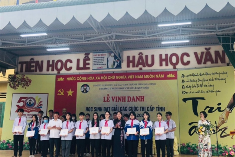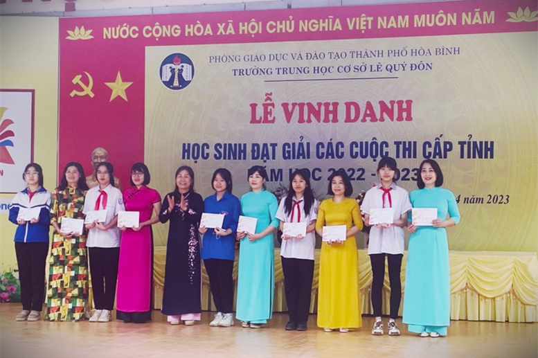 "> Tiếp đó là vào tháng 2/2023, kì thi chọn học sinh giỏi cấp thành phố 10 môn văn hóa đã diễn ra tại Trường THCS Sông Đà. Các thầy cô giáo Trường THCS Lê Quý Đôn quyết định chọn cử 73 em dự thi 10/10 môn. Kết quả chung cuộc 56/73 em thuộc 10/10 môn đoạt các giải, trong đó có 04 giải Nhất, 11 giải Nhì, 27 giải Ba và 13 giải Khuyến khích. Sau vòng thi cấp TP, 28 em học sinh nhà trường trong tổng số 120 em học sinh toàn thành phố được chọn tham gia ôn luyện và dự thi cấp tỉnh để rồi cả trường như vỡ òa trong niềm hạnh phúc không thể nói lên lời khi có kết quả. 28 học sinh của nhà trường đã ngẩng cao đầu đón nhận 05 giải Nhất, 12 giải Nhì, 10 giải Ba và 01 giải Khuyến khích trong tổng số 109 học sinh đoàn thành phố đạt giải. Đây là con số đặc biệt ấn tượng mà thấy và trò đã chờ đợi trong hàng chục năm qua, là sự nỗ lực của học trò, là sự miệt mài cống hiến của các thầy cô và là sự đồng hành vô cùng hiệu quả của các bậc PHHS. Kết quả đó là công lao chung của ngành GD&ĐT, tập thể nhà trường, nhưng không thể không nhắc đến các thầy cô: Đặng Thị Thu Hiền phụ trách môn Ngữ văn với 1 giải Nhất, 05 giải Nhì; cô giáo Quách Thị Khánh Hương phụ trách môn Tiếng Anh với 01 giải Nhất, 02 giải Nhì, 01 giải Ba; cô giáo Trần Thị Mến Thương phụ trách môn Hóa học với 1 giải Nhất, 03 giải Ba; cô giáo Nguyễn Thị Quyến phụ trách môn Giáo dục công dân với 1 giải Nhất, 1 giải Nhì, 1 giải Ba; cô giáo Bùi Thị Xuân phụ trách môn Sinh học cùng có 01 giải Nhất, 01 giải Nhì, 01 giải Ba; cô giáo Nguyễn Diệp Linh phụ trách môn Tin học với 01 giải Nhì, 01 giải Ba, 01 giải Khuyến khích; cô giáo Trịnh Thị Hằng phụ trách môn Toán có 01 giải Nhì; cô giáo Đinh Hồng Thúy phụ trách môn Địa lí có 01 giải Ba; cô giáo Đinh Phương Anh hỗ trợ đội tuyển môn Lịch sử có 01 giải Nhì, 02 giải Ba.