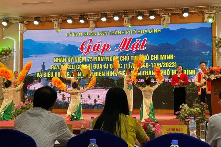 Nhân kỷ niệm 75 năm ngày Chủ tịch Hồ Chí Minh ra Lời kêu gọi thi đua ái quốc (11.6.1948 -11.6.2023), chiều ngày 12.6, tại Trung tâm Hội nghị Diamond Palace đã diễn ra Chương trình gặp mặt và biểu dương, tôn vinh điển hình tiên tiến thành phố Hòa Bình.
