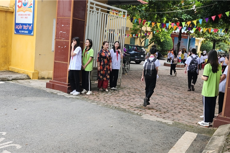 Ngay từ tuần học đầu tiên của năm học (ngày 11/9/2023), các thầy cô giáo phụ trách và các em học sinh trong Đội Thanh niên xung kích và Thiếu niên tự quản đã có mặt rất sớm thực hiện nhiệm vụ từ cổng trường.
