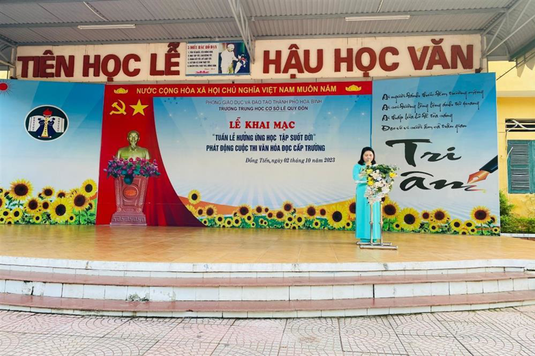 TRƯỜNG THCS LÊ QUÝ ĐÔN TỔ CHỨC LỄ KHAI MẠC TUẦN LỄ HƯỞNG ỨNG HỌC TẬP SUỐT ĐỜI NĂM 2023 VÀ PHÁT ĐỘNG CUỘC THI VĂN HÓA ĐỌC CẤP TRƯỜNG