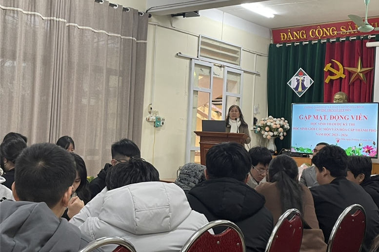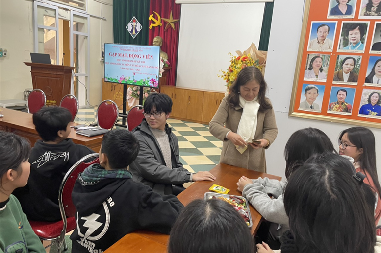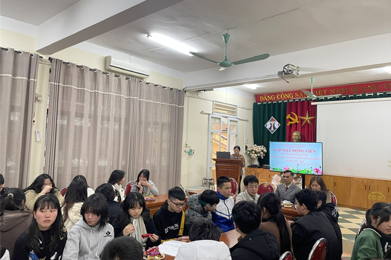 Với mong muốn chia sẻ phần nào những áp lực thi cử, cổ vũ tinh thần, động viên các em tự tin thể hiện hết khả năng của mình, chiều ngày 29/01/2023, Ban giám hiệu, các thầy cô giáo phụ trách đội tuyển HSG nhà trường, các thầy cô giáo chủ nhiệm và Ban đại diện CMHS đã tổ chức một buổi gặp mặt hết sức thân mật, cởi mở, ý nghĩa nhằm động viên cũng như tiếp thêm sức mạnh cho các em chuẩn bị bước vào kì thi.