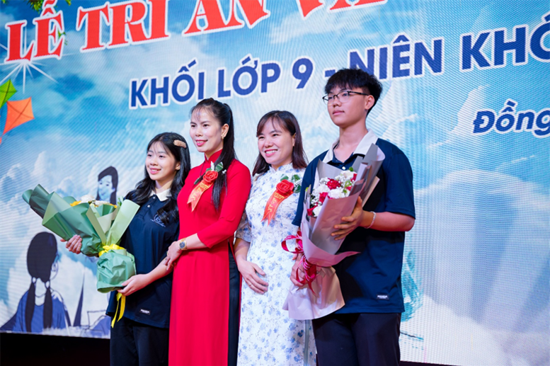 Chị Nguyễn Thị Thanh Huyền- Chi hội trưởng của BĐDCMHS lớp 9A1, đại diện cho phụ huynh học sinh khối 9 chia sẻ: “Tôi đồng hành cùng con, chứng kiến hành trình con lớn lên từng ngày và hôm nay là ngày lễ trưởng thành của con, tôi cảm thấy rất xúc động. Xin được cảm ơn quý thầy cô đã dìu dắt, dạy bảo con chúng tôi nên người. Cảm ơn chương trình ý nghĩa ngày hôm nay cho tôi và các phụ huynh có cơ hội được bày tỏ tình yêu thương với các con, được chứng kiến các con đã trưởng thành…”.