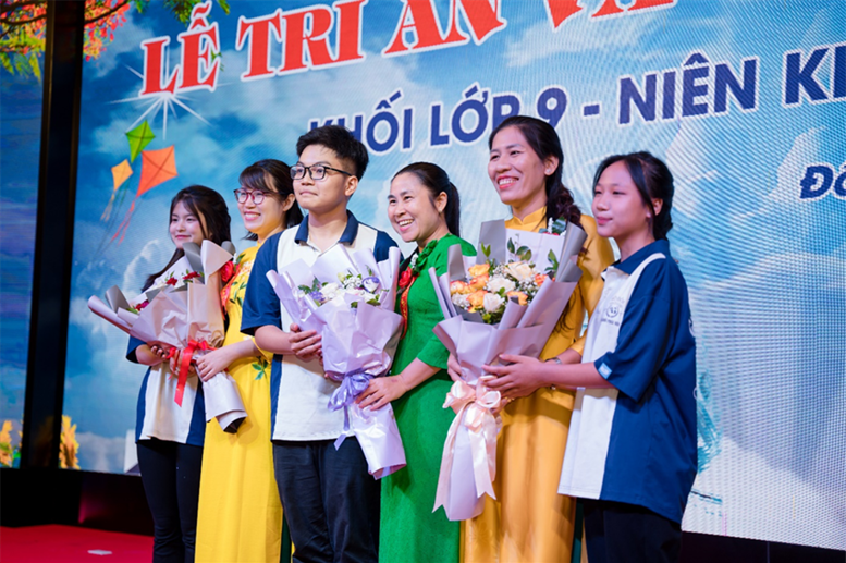 Về dự buổi Lễ, Nhà giáo Vũ Thị Lan Phương đặc biệt trân trọng mời Nhà giáo Phạm Thị Hải Châu- Nguyên Hiệu trưởng nhà trường người đã đón các em vào trường và giờ đây chứng kiến các em trưởng thành, chắp cánh bay cao có những lời chia sẻ, dặn dò với học trò. Hành động “uống nước nhớ nguồn” ấy, như một bài học sâu sắc và quý giá dành cho không chỉ các em học sinh mà còn đối với tập thể giáo viên nhà trường.