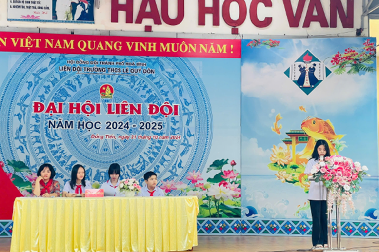 Thực hiện chương trình công tác Đội và phong trào thiếu nhi năm học 2024-2025, sáng ngày 21/10/2024, Liên đội trường THCS Lê Quý Đôn-TP Hoà Bình đã long trọng tổ chức Đại hội Liên đội năm học 2024-2025.