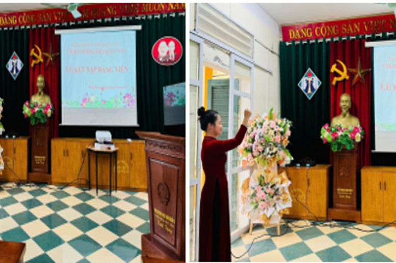 Đảng viên Phạm Thị Thu Phương và Nguyễn Thị Tuyết Mai xúc động đọc tuyên thệ Phát biểu tại buổi lễ, đồng chí Bí thư Chi bộ nhấn mạnh: “Trở thành Đảng viên Đảng Cộng sản Việt Nam là niềm tự hào, đồng thời cũng là trách nhiệm lớn. Mong rằng các đồng chí sẽ tiếp tục học tập, rèn luyện, phát huy vai trò tiên phong trong công việc và cuộc sống, góp phần xây dựng tổ chức Đảng ngày càng vững mạnh”.