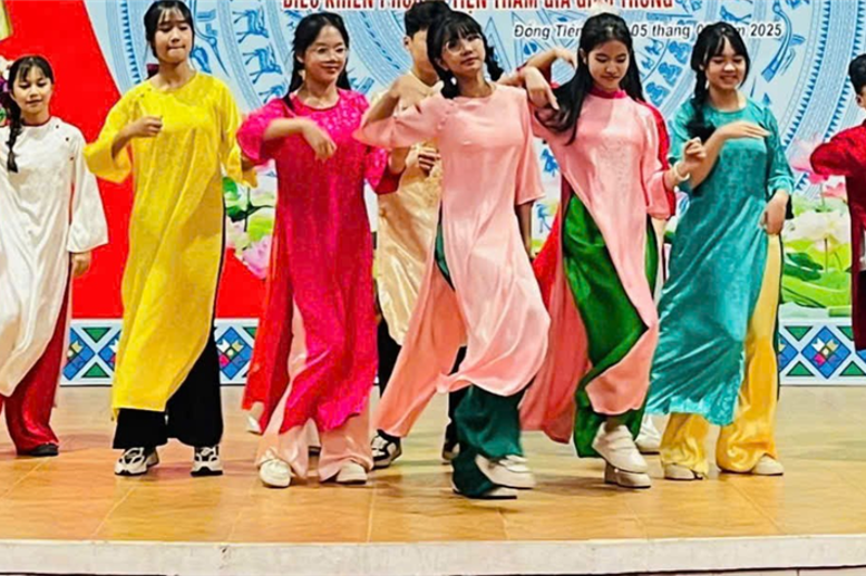 Mở đầu chương trình là những tiết mục văn nghệ sôi động, rộn ràng, đầy sắc xuân của các em học sinh lớp 7A1 và 7A3 trình diễn làm cho bầu không khí vui tươi, phấn khởi và đầy sôi động.