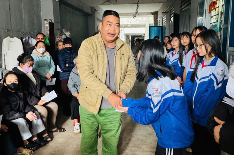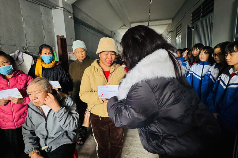 Buổi chiều cùng ngày, đoàn từ thiện của nhà trường đến với điểm trao quà cho các bệnh nhân chạy thận nằm sâu trong ngách nhỏ của một con phố trên địa bàn phường Hoà Bình. Không gian giản dị, tiết trời hơi lạnh nhưng được ấm lên bởi rất đông các bệnh nhân đã lặng lẽ tập trung chờ đợi. Có cô ngồi trên chiếc ghế nhựa cũ, tay run run cầm phong bì quà; có ông phải tựa vào tường vì đôi chân không còn đủ sức; có bác đã phải ngồi lặng lẽ trên chiếc xe lăn; cũng có những bệnh nhân vắng mặt vì đang vào ca chạy thận ở bệnh viện,... Ánh mắt của họ – vừa mệt mỏi sau bao ngày chống chọi với bệnh tật, vừa ánh lên niềm xúc động, biết ơn – khiến ai có mặt cũng nghẹn lòng. Những lời cảm ơn mộc mạc, những cái nắm tay thật chặt và lời chúc chân thành đã xóa đi khoảng cách giữa người trao và người nhận, để con ngách nhỏ chiều nay bỗng nhộn nhịp và ấm áp bởi tình yêu thương khi mùa xuân đang về.