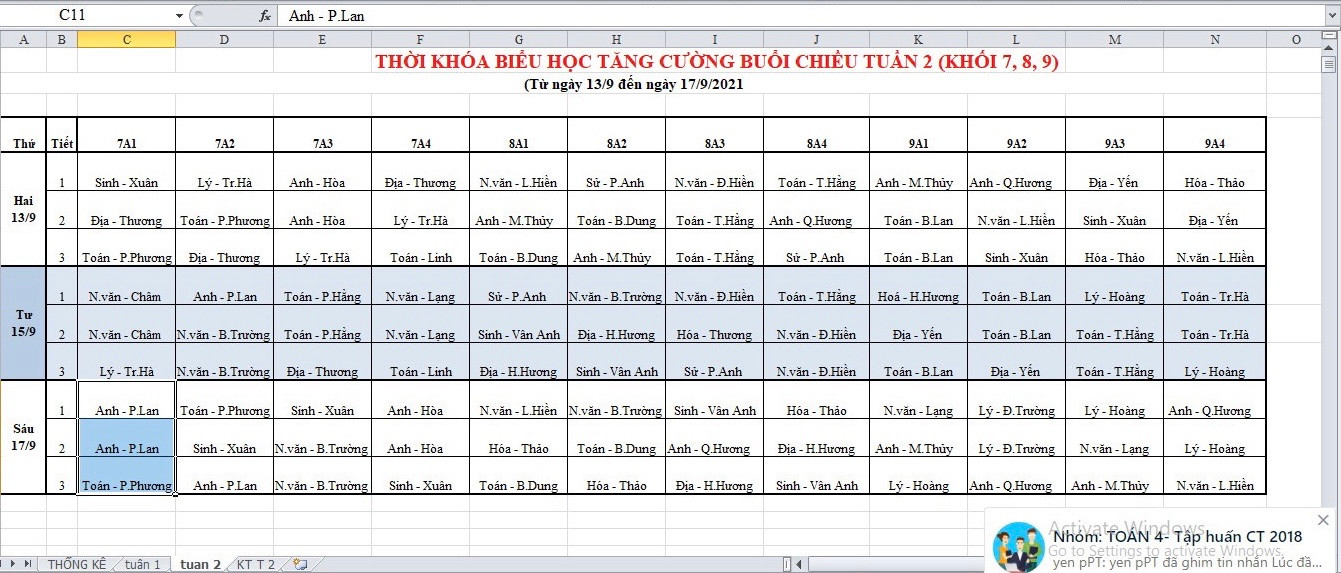 TKB HỌC TRỰC TUYẾN TUẦN 13: TỪ 29/11/2021 ĐẾN 5/12/2021