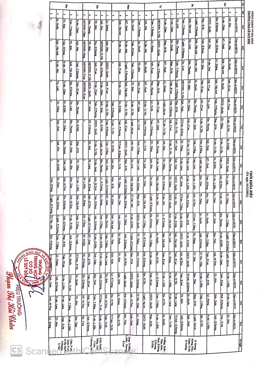 Thời khoá biểu :: 19/12/2021