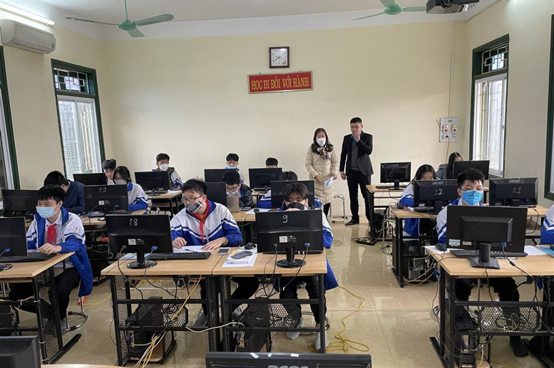 Để cuộc thi diễn ra thuận lợi, đảm bảo nghiêm các quy định phòng dịch, các thầy cô giáo trong Ban coi thi đã kiểm tra các thông tin cá nhân, ID của học sinh, động viên các em đăng ký mang laptop, chia ca thi khối 8.9 buổi sáng và khối 6,7 buổi chiều. Phòng thi đã được vệ sinh sạch sẽ, bàn ghế kê giãn cách, đặc biệt đường truyền Internet đã được nâng cấp ổn định. Tất cả đã sẵn sàng cho các thí sinh tham gia chuyển đổi công nghệ số bằng các cuộc thi trên mạng.