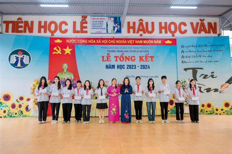 Vẫn không gian ấy, vẫn những khuôn mặt thân thương ấy, nay mình đã trở thành bậc "tiền bối", cảm xúc thật sự bồi hồi trước sự đón tiếp chân thành của cán bộ giáo viên, những lời chào ríu ran và ánh mắt yêu thương của học trò. Vô cùng vui mừng và xúc động hơn khi nghe báo cáo kết quả của một năm học đặc biệt mà Thầy và Trò đã nỗ lực vượt qua mọi khó khăn để tiếp tục có những thành tích nở hoa rực rỡ: 98,7% học sinh có hai mặt giáo dục đạt yêu cầu trở lên; 185/654 đạt Học sinh Giỏi ; 9 học sinh đạt Học sinh Xuất sắc; gần 50% học sinh đạt kết quả Khá trong học tập là những con số ấn tượng trong bối cảnh nhà trường tiếp tục giữ vững truyền thống: "Dạy thật - Học thật - Kết quả thật"; Khối 9 tiếp tục đạt vị trí số 1 trong kết quả thi thử đề thi tuyển sinh của thành phố Hòa BÌnh.