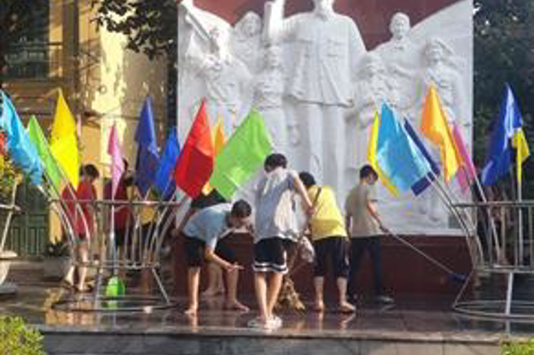 Tháng 7 mưa bão, hàng trăm cây xanh trong khuôn viên trường được rà soát kiểm tra mức độ an toàn cho thầy và trò. Toàn bộ các thầy cô giáo trẻ thuộc Chi đoàn thanh niên cùng với công nhân của Công ty môi trường đô thị đã thực hiện công tác cắt tỉa cành, đốn chặt, cắt ngọn những cây già cỗi, có nguy cơ mất an toàn. Bắt đầu từ 24/7, toàn thể các thầy cô giáo, cán bộ, nhân viên đã có mặt ở trường cả ngày với một loạt các công việc được sắp xếp theo thứ tự: lao động nhặt cỏ rác, mở cửa lớp học, vệ sinh trường lớp, phun thuốc khử khuẩn, phun thuốc diệt muỗi... Một công việc được đặc biệt chú ý nữa đó là sắp xếp lại phòng học, chuyển đổi bàn ghế theo kích cỡ phù hợp với độ tuổi học sinh từng khối lớp; kiểm kê và bàn giao tài sản cho từng lớp, từng phòng chức năng; kiểm tra toàn bộ thiết bị dạy học như máy tính, máy chiếu, lau dọn các phòng chức năng, dụng cụ thí nghiệm, trang trí thư viện, sắp sếp và bổ sung sách báo..