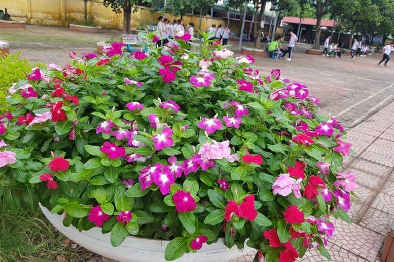 Ngay từ tháng 3, trong thời gian nghỉ giãn cách xã hội, các thầy cô đã lên ý tưởng sơn, vẽ trang trí gần 30 chiếc ghế đá trong khuôn viên sân trường. Nhờ bàn tay khéo léo, óc thầm mỹ và chuyên môn Mỹ thuật mà các cô đã thổi hồn vào từng chiếc ghế đá... Sân trường có một diện mạo mới, sinh động, tạo chiều sâu cảm xúc. Không gian như được mở rộng ra, gợi những liên tưởng thú vị, bất tận với mỗi học trò gắn với định hướng giáo dục thông qua những khẩu hiệu với nhiều kích cỡ, màu sắc sinh động gắn trên mỗi thân cây, mỗi khoảng tường trống... Chiếc cổng trường khá già nua, cũ kĩ cũng được gia cố thêm khung sắt và khoác lên mình bộ áo mới...