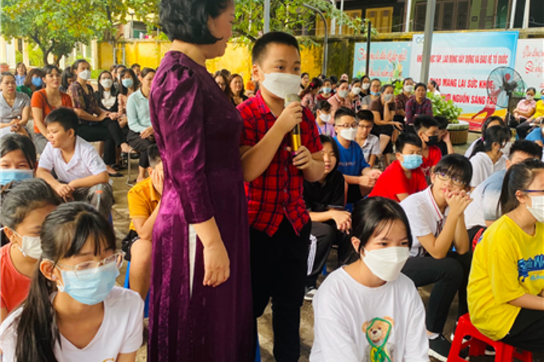 Với trách nhiệm của một người đứng đầu, cô giáo hiệu trưởng Phạm Thị Hải Châu đã đón các em thông qua phần phát biểu, giao lưu, trò chuyện rất gần gũi. Cô không chỉ bộc lộ niềm vui khi được đón nhận các trò bước vào cấp học mới, mà còn rèn cho các con những kĩ năng đầu tiên trên bước đường học tập, tu dưỡng đạo đức để trở thành con người toàn diện: Đức, Trí, Thể, Mĩ. Hơn nữa, cô giáo còn chia sẻ với các bậc phụ huynh với mong muốn PHHS sẽ luôn tin tưởng, đồng hành, cộng đồng trách nhiệm để nhìn thấy sự tiến bộ, trưởng thành của các con từng ngày và hi vọng sau 4 năm các con được rèn giũa dưới mái trường THCS Lê Qúy Đôn các con sẽ có một sự thay đổi về mọi mặt.