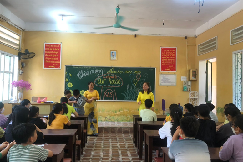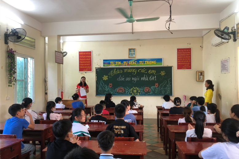 Trên sân trường, tại hàng ghế riêng của mình, có khá đông các bậc phụ huynh chăm chú theo dõi từng hành động của con. Trên gương mặt bớt dần sự lo lắng, thay vào đó là nét rạng ngời xúc động hạnh phúc, tin yêu về ngôi trường có bề dày truyền thống 50 năm. Chắc chắn, các bậc PHHS nhận thấy rõ sự quan tâm của Ban giám hiệu nhà trường trong việc sắp xếp, lựa chọn đội ngũ giáo viên chủ nhiệm, giáo viên giảng dạy khối 6 là những thầy cô tâm huyết, nhiệt tình, giỏi chuyên môn, nhiều kinh nghiệm, đáp ứng được sự thay đổi trong dạy học đổi mới phát triển năng lực học sinh. Các cô giáo Trương Thị Lạng- GVCN lớp 6A1, Lã Thị Thu Hiền- GVCN lớp 6A2, Nguyễn Thị Thái Hòa- GVCN lớp 6A3 và cô giáo Trần Thị Phương- GVCN lớp 6A4 chắc chắn sẽ là những người đồng hành vô cùng đặc biệt cùng các con trongh năm học mới này.