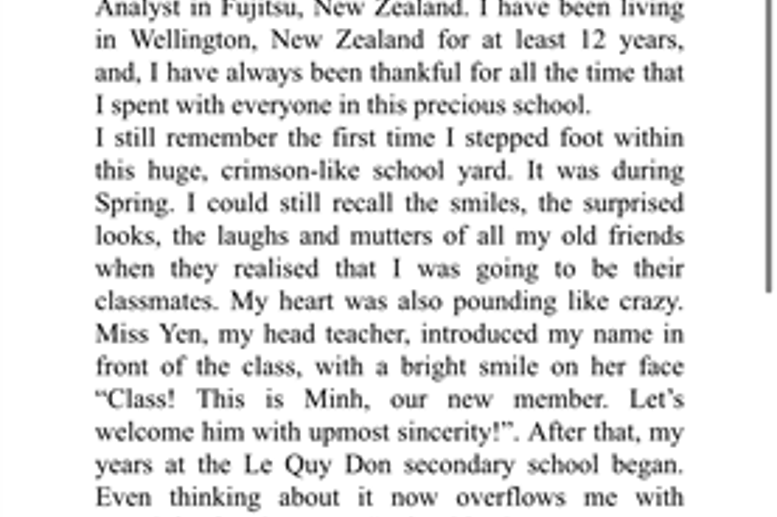 Hôm nay, nhà trường đã được đón nhận một bức thư từ một cựu học sinh Đặng Vương Minh - đang du học tại Newzealand.