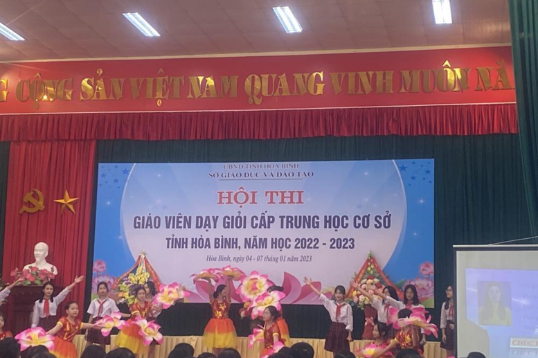 "> Hội thi Giáo viên dạy giỏi cấp THCS của tỉnh Hòa Bình năm học 2022-2023 được diễn ra từ ngày 04 đến 07/01/2023 với sự tham gia của 89 thí sinh đến từ các trường THCS trên địa bàn tỉnh. Các môn dự thi bao gồm: Toán, Địa lý, Công nghệ và Giáo dục thể chất. Hội thi gồm 2 phần: Phần thi thuyết trình giải pháp nâng cao chất lượng dạy học và phần thi thực hành tiết dạy. Ở mỗi phần thi, qua đánh giá của ban tổ chức, đa số các thí sinh đều có sự chuẩn bị kĩ càng, phát huy tính chủ động linh hoạt, sáng tạo và những hiểu biết vững vàng về chuyên môn. Các nội dung thể hiện rõ nét được tính đổi mới, thiết thực về phương pháp, hình thức tổ chức dạy học, tạo được bầu không khí sôi động, hào hứng, giúp học sinh hoạt động tích cực.