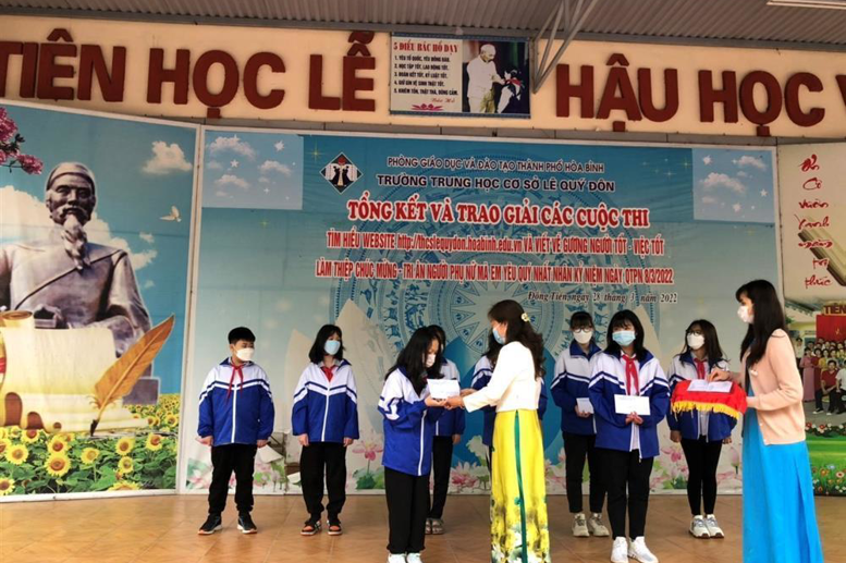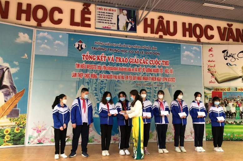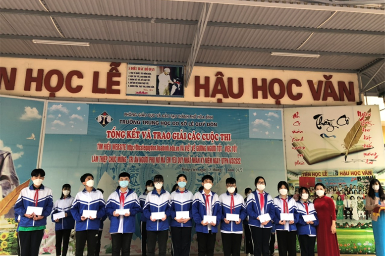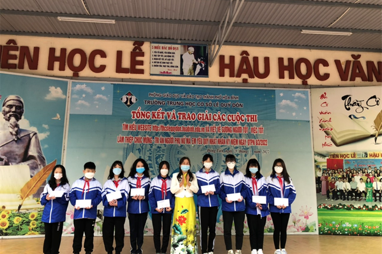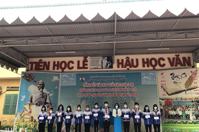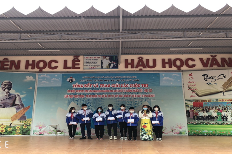Sáng ngày 28/3/2022, Trường THCS Lê Quý Đôn đã tổ chức trao giải cuộc thi “Tìm hiểu website nhà trường” và “Làm thiệp chúc mừng – tri ân người phụ nữ mà em yêu quý nhất” nhân kỉ niệm 112 năm ngày Quốc tế phụ nữ 8/3 và 1981 năm khởi nghĩa Hai Bà Trưng.