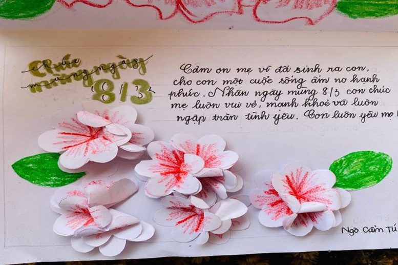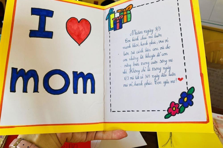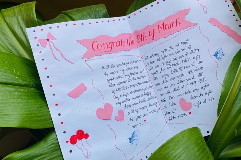 Với cuộc thi “Làm thiệp chúc mừng – tri ân người phụ nữ mà em yêu quý nhất”, mỗi học sinh trong nhà trường đượctự tay làm thiệp để gửi đến những người phụ nữ - một nửa thế giới yêu thương… mà các em yêu quý. Đây là một cuộc thi có ý nghĩa thiết thực, tạo sân chơi bổ ích, sáng tạo, khuyến khích sự khéo léo của học sinh, giúp các em thể hiện được tình cảm, sự quan tâm, lòng biết ơn và cách tri ân tới những người phụ nữ mà các em yêu quý.