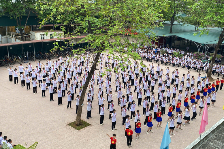 Chương trình diễn ra trang trọng, hấp dẫn khi học sinh được ôn lại truyền thống vẻ vang của Đoàn, tham dự lễ ra mắt Đoàn viên mới đầy tự hào và hòa mình vào không khí sôi động của màn đồng diễn “Hát vang trong kỷ nguyên mới”. Màn đồng diễn công phu, đều đẹp với sự phối hợp nhịp nhàng, thể hiện tinh thần đoàn kết, sức trẻ và khát vọng vươn lên của học sinh toàn trường đã để lại ấn tượng sâu sắc trong lòng người xem.