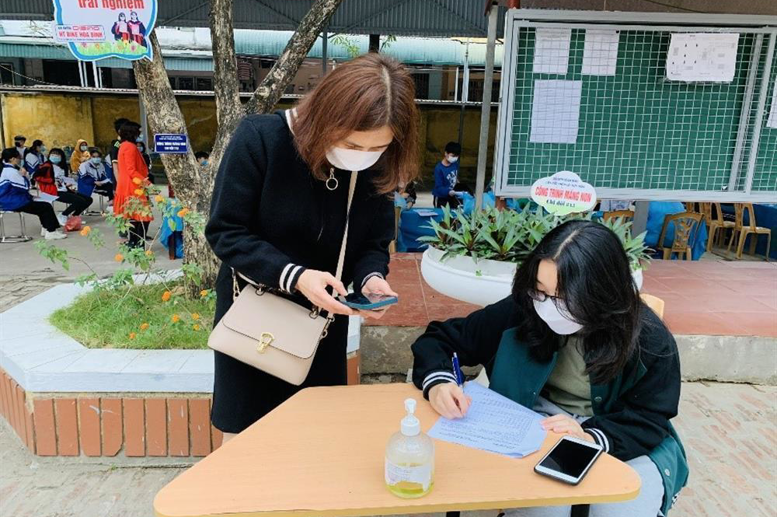 Để đảm bảo an toàn phòng dịch, nhà trường đã xây dựng kế hoạch và phân lịch tiêm theo khung giờ. Mỗi lớp sẽ tiêm theo một khung giờ khác nhau để tránh tập trung đông người trong cùng một thời điểm. Trường cũng đã phối hợp với Trung tâm Y tế Thành phố bố trí 3 bàn khám, 2 bàn tiêm, 1 phòng thường trực với các trang thiết bị, dụng cụ y tế cần thiết để kịp thời xử lý các trường hợp phản ứng sau khi tiêm và 4 phòng chờ sau khi tiêm. Các bàn khám, bàn tiêm, phòng chờ được bố trí theo nguyên tắc một chiều, đảm bảo giãn cách, an toàn phòng dịch.