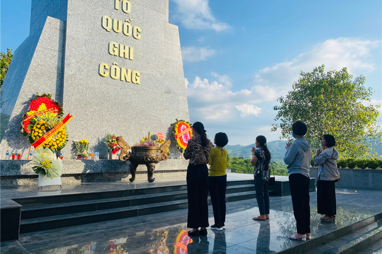 Trong không khí trang nghiêm, xúc động, đoàn dành một phút mặc niệm tưởng nhớ các liệt sỹ đã hy sinh trong Chiến dịch Hoà Bình vì độc lập, tự do của đất nước. Bày tỏ lòng biết ơn vô hạn và niềm tự hào về các anh hùng liệt sỹ, những người con ưu tú của dân tộc đã không tiếc máu xương cống hiến cho sự nghiệp giải phóng dân tộc, vì nền độc lập, tự do của Tổ quốc, vì cuộc sống bình yên của Nhân dân. Tiếp đó, đại diện cho cán bộ, công nhân viên, giáo viên và học sinh nhà trường dâng hương tại Đài tưởng niệm các anh hùng liệt sỹ, thắp nén nhang tại các phần mộ với lòng thành kính biết ơn sâu sắc, nguyện sẽ công tác, học tập thật tốt, góp phần xây dựng quê hương, đất nướcngày càng giàu mạnh để xứng đáng với công lao của các anh hùng liệt sỹ đã ngã xuống vì độc lập tự do của dân tộc.