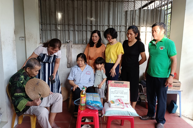 Chiều nay (09/6/2023) như thường lệ Ban Giám Hiệu, các cô giáo trong CLB Thiện nguyện của Trường THCS Lê Quý Đôn TP Hòa Bình với sự kết nối của các thành viên Nhóm chung tay ủng hộ bệnh nhân chạy thận đã đến thăm hỏi và tặng 6 suất quà - mỗi suất trị giá ba trăm nghìn đồng cho các bệnh nhân chạy thận có hoàn cảnh đặc biệt khó khăn ở các khu xóm trọ trên địa bàn thành phố. Cô giáo Hiệu trưởng Phạm Thị Hải Châu và Cô giáo Phó hiệu trưởng Phạm Thị Thu Hằng còn có quà nhu yếu phẩm và tiền mặt tặng riêng cho các bệnh nhân.
