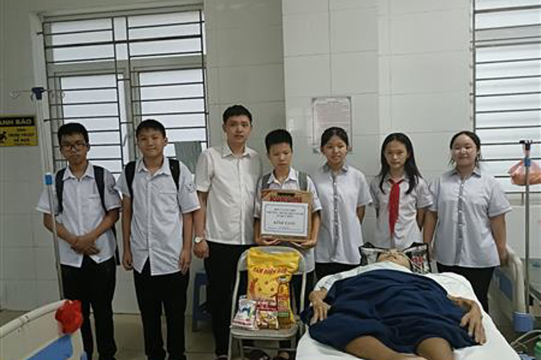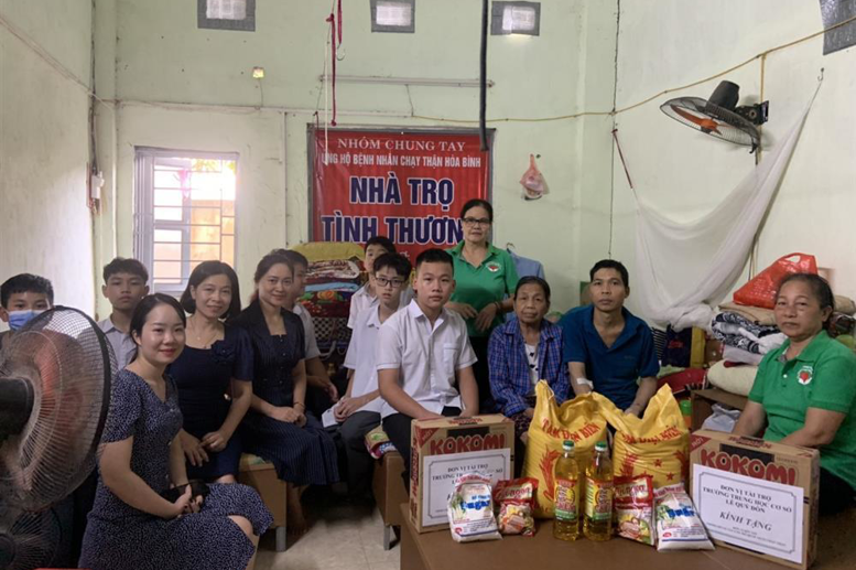 Đúng 16h30 phút ngày 09/10/2023, các thầy giáo, cô giáo cùng các em học sinh trong CLB Thiện nguyện của nhà trường với sự kết nối của các thành viên Nhóm chung tay ủng hộ bệnh nhân chạy thận lại tiếp tục lên đường theo “lịch hẹn”. Các thành viên chia thành hai nhóm, đến thăm hỏi và tặng 6 suất quà - mỗi suất trị giá ba trăm nghìn đồng cho các bệnh nhân chạy thận có hoàn cảnh đặc biệt khó khăn ở các khu xóm trọ thuộc Trung tâm y tế Thành phố và khu vực xóm trọ tình thương phường Đồng Tiến.