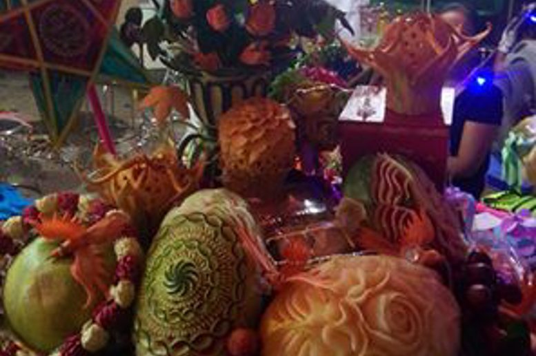 trung thu, không khí càng tấp nập tưng bừng. Một mâm ngũ quả được tỉa hình rất